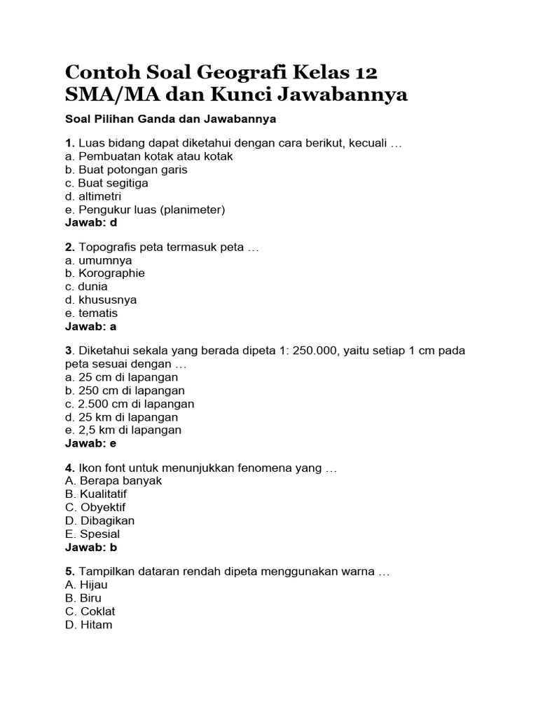 Berikut adalah beberapa kategori soal geografi yang relevan untuk siswa kelas 2, beserta contoh-contohnya: