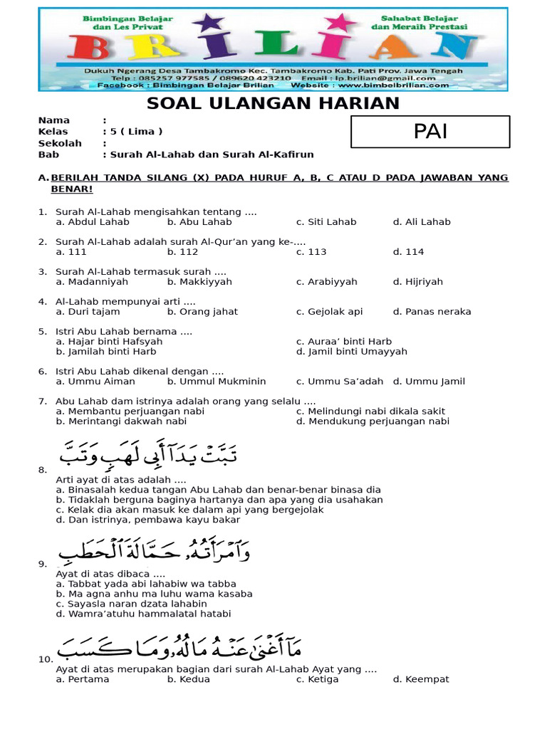 Di kelas 1 SD, pembelajaran Surah Al-Fatihah difokuskan pada pengenalan, pelafalan yang benar, pemahaman makna dasar, dan mulai menghafalnya. Guru PAI dituntut untuk menyajikan materi ini dengan cara yang menarik, interaktif, dan sesuai dengan tingkat pemahaman anak usia dini. Artikel ini akan membahas secara mendalam contoh soal-soal yang dapat digunakan untuk menguji pemahaman siswa kelas 1 SD terhadap Surah Al-Fatihah, disertai dengan penjelasan dan strategi pengajaran yang efektif, dengan target panjang artikel sekitar 1.200 kata.
